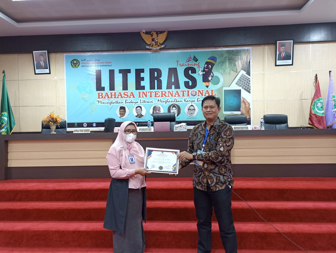 UPT Pusat Pengembangan Bahasa IAIN Sultan Amai Gorontalo mengadakan kegiatan “Training Literasi Bahasa Internasional’’ pada hari Senin-Selasa, 27-28 Juni 2022. Seminar ini dilaksanakan di Auditorium Rektorat kampus 1 IAIN Sultan Amai Gorontalo.