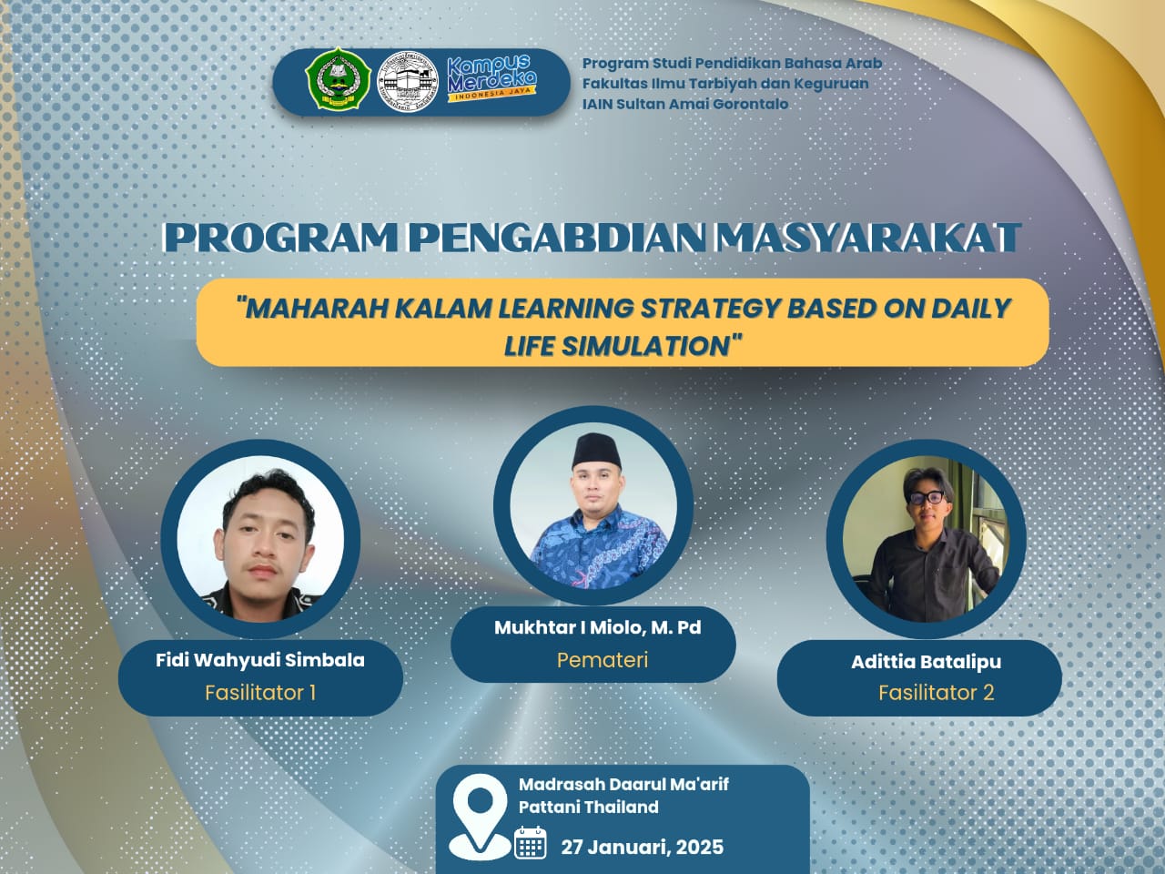 Kegiatan PkM ini merupakan bentuk komitmen PBA FITK IAIN Sultan Amai Gorontalo untuk berkontribusi dalam pengembangan pendidikan bahasa Arab secara Internasional, serta memperkuat hubungan antara Indonesia dan Malaysia melalui bidang pendidikan. Dengan harapan, kegiatan ini dapat menginspirasi generasi muda untuk lebih mencintai dan menguasai bahasa Arab sebagai alat komunikasi yang penting.