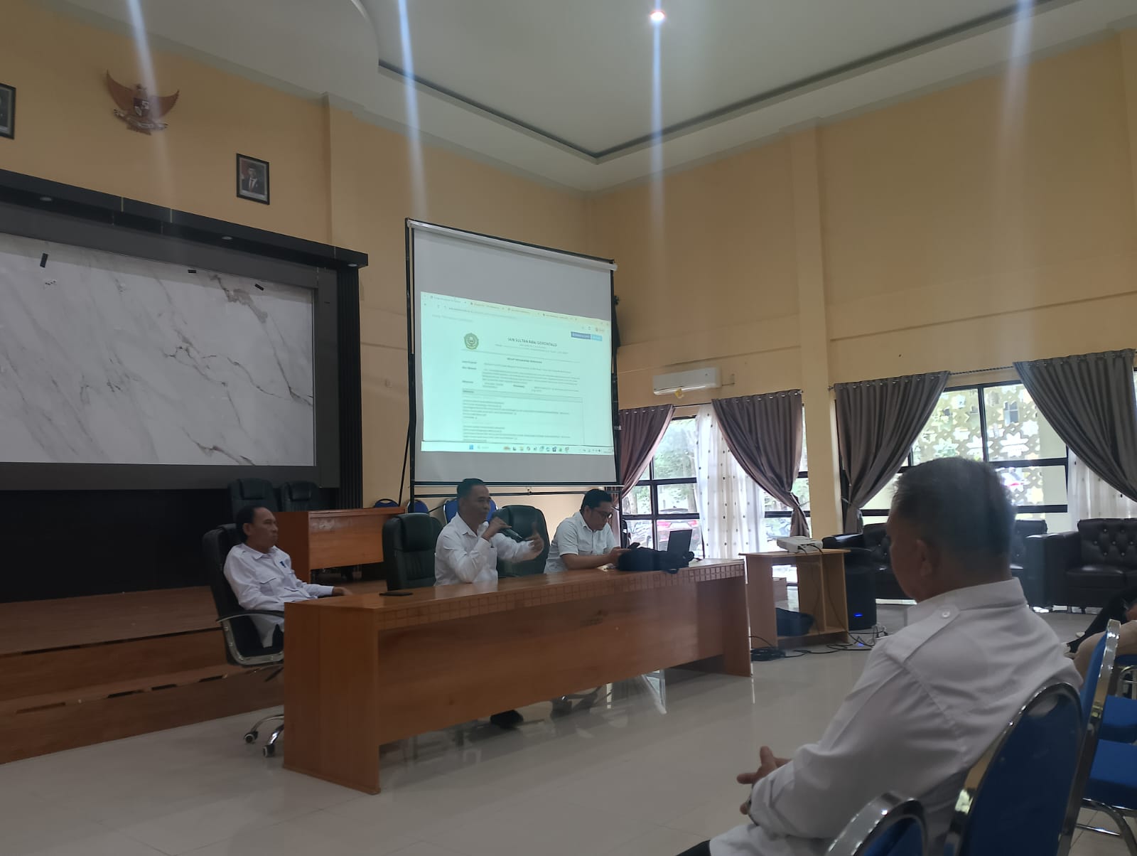 Gorontalo, 09 Februari 2025 – Dosen Jurusan Pendidikan Bahasa Arab dari Fakultas Ilmu Tarbiyah dan Keguruan (FITK) IAIN Sultan Amai Gorontalo mengikuti rapat penting yang membahas penyerahan SK Beban Mengajar Dosen, penyusunan Rencana Pembelajaran Semester (RPS), serta finalisasi peta jabatan keahlian dosen. Kegiatan ini dihadiri oleh seluruh unsur pimpinan FITK, termasuk Ketua Jurusan Mukhtar I. Miolo, M.Pd, Sekretaris Jurusan Suharia Sarif, M.Pd.I, dan dosen pengampu mata kuliah, serta pihak terkait lainnya.