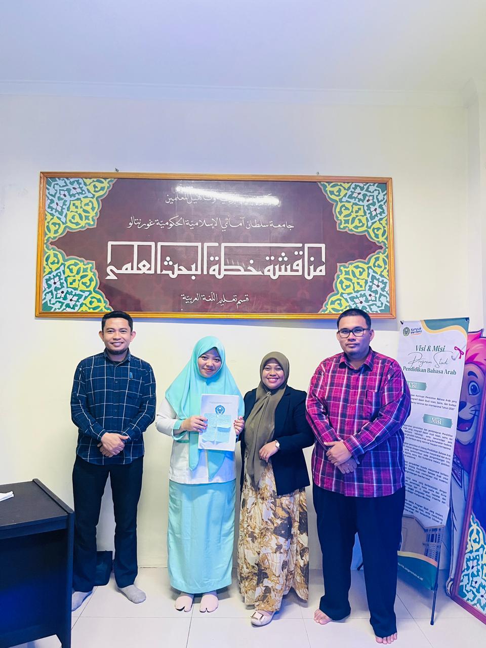 Pengujian dilakukan oleh Dosen-dosen Prodi Pendidikan Bahasa Arab yang berperan sebagai penguji. Para dosen memberikan penilaian terhadap aspek substansi, kejelasan pemikiran akademik, serta kesesuaian antara fokus penelitian dan kajian yang digunakan. Selain itu, masukan dari penguji turut membantu peserta menyempurnakan proposal agar lebih komprehensif dan sesuai dengan standar akademik yang berlaku.