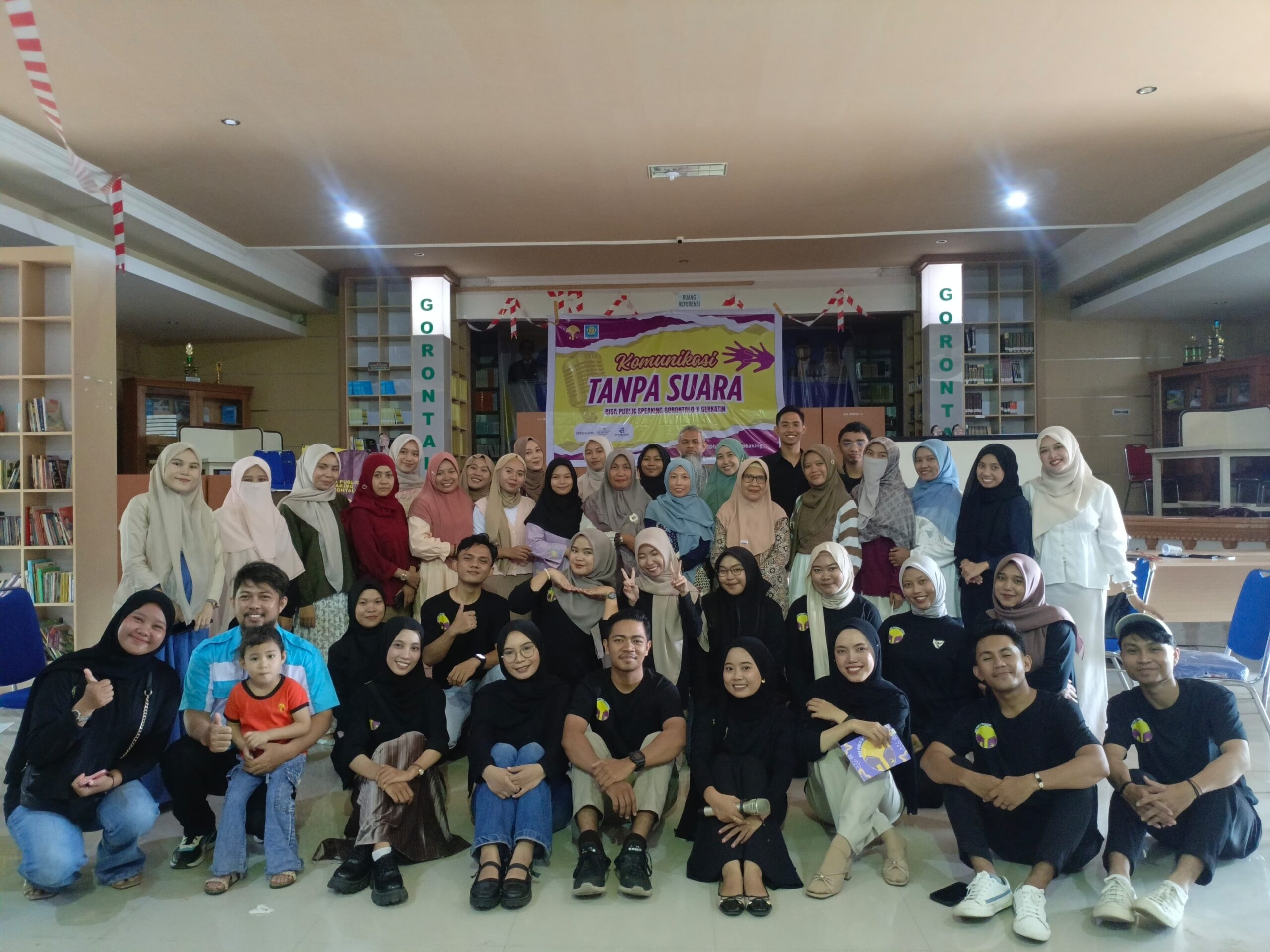 Gorontalo, 1 Juni 2025– Bisa Publik Speaking Gorontalo bersama GERKATIN (Gerakan untuk Kesejahteraan Tunarungu Indonesia) menyelenggarakan kelas bahasa isyarat bertema “Komunikasi Tanpa Suara” di Aula Dinas Perpustakaan dan Kearsipan Kota Gorontalo. Kegiatan ini berlangsung dari pukul 09.00 hingga 12.00 dan dihadiri oleh berbagai peserta yang antusias untuk belajar.