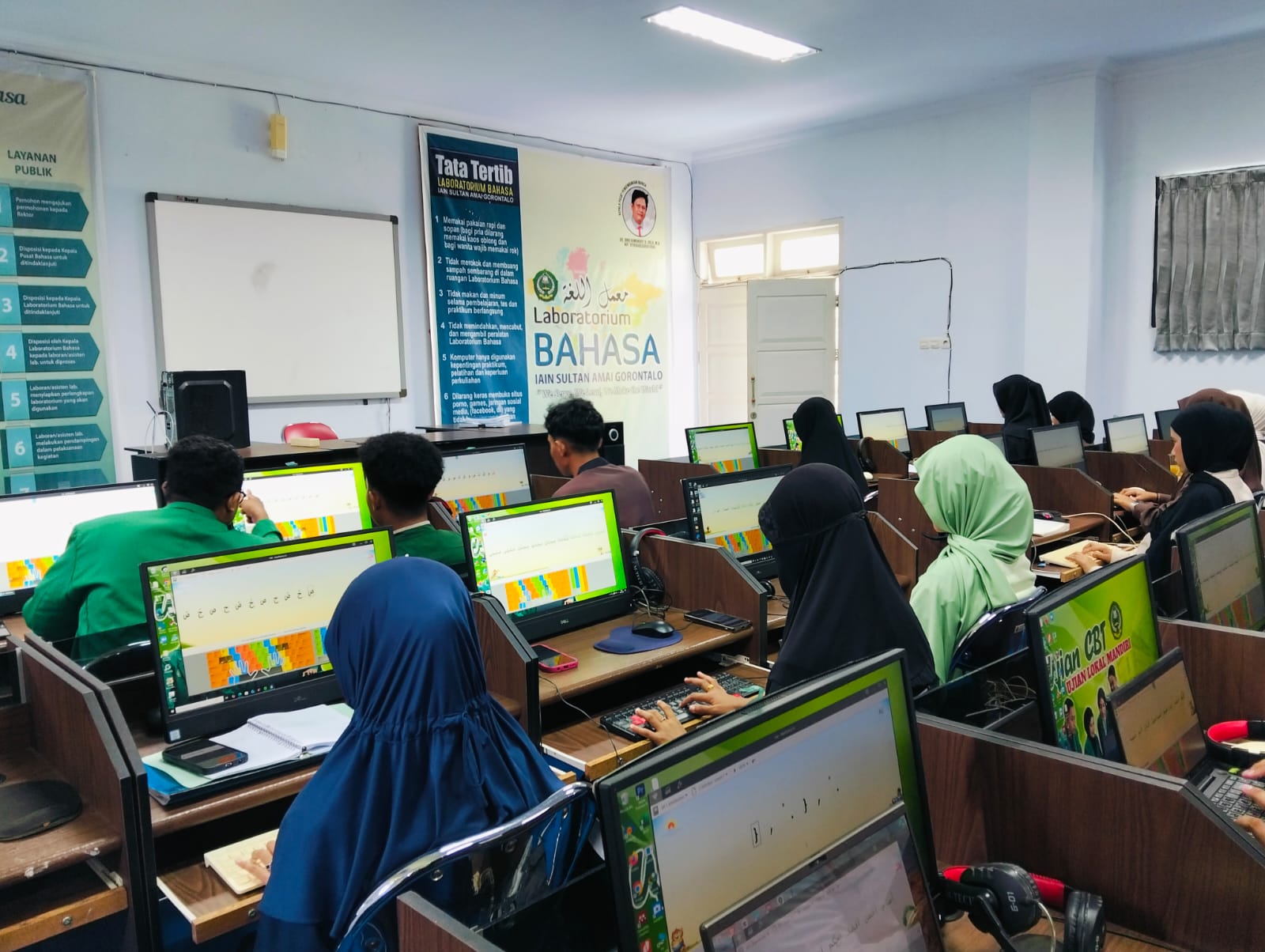 Gorontalo_Mahasiswa Jurusan Pendidikan Bahasa Arab, Fakultas Ilmu Tarbiyah dan Keguruan, semester 4 melaksanakan praktikum Qawaidul Imla wal Kitabah berbasis Rapid Typing pada Jumat, 24 April 2026. Kegiatan ini berlangsung di Ruang Laboratorium Bahasa IAIN Sultan Amai Gorontalo dan menjadi bagian dari upaya peningkatan kompetensi kebahasaan, khususnya dalam penerapan kaidah penulisan serta keterampilan pengetikan cepat yang tetap mengikuti aturan imla dan kitabah. Suasana pelaksanaan praktikum tampak kondusif dengan fokus pada latihan yang terstruktur dan evaluasi selama sesi berlangsung. Dalam pembelajaran berbasis rapid typing, mahasiswa diarahkan untuk tidak hanya memahami teori kaidah, tetapi juga mengimplementasikannya secara praktis melalui latihan penulisan yang dilakukan dalam tempo tertentu.