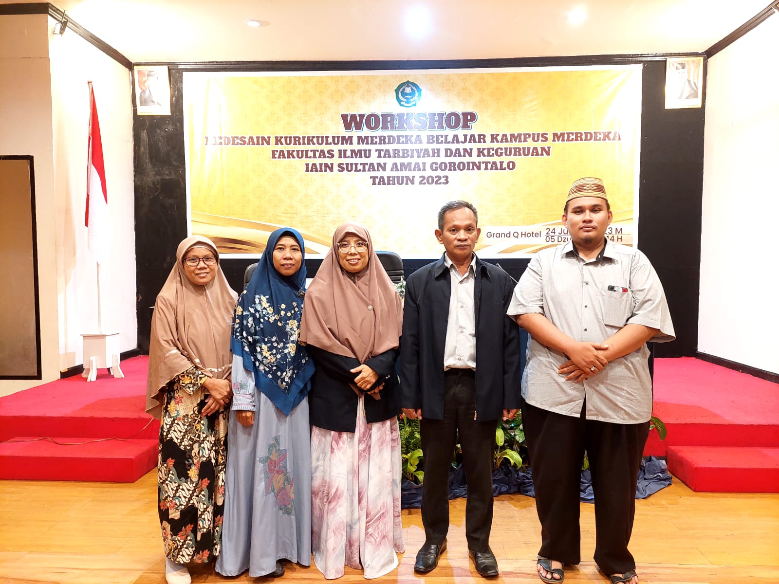 Untuk mewujudkan program ini Fakultas Ilmu Tarbiyah dan Keguruan menggelar kegiatan Workshop Redesain Kurikulum Merdeka Belajar Kampus Merdeka, Sabtu 24 Juni 2023 bertempat di Grand Q Hotel. Kegiatan ini dihadiri oleh Rektor IAIN Sultan Amai Gorontalo DR. H. Zulkarnain Suleman, M.HI, Wakil Rektor I Dr. Sofyan AP. Kau, M.HI, Ketua Senat Prof. Dr. H. Kasim Yahiji, M.Pd, Ketua LPM, pimpinan Fakultas Ilmu Tarbiyah dan Keguruan, Ketua Jurusan, Sekretaris Jurusan, Gugus Penjamin Mutu Prodi dan Stakeholder dari beberapa sekolah, terkhusus PBA sendiri mengundang Atik Mar’atus Shalihah Guru Bahasa Arab dari MAN 1 Kab.Gorontalo.