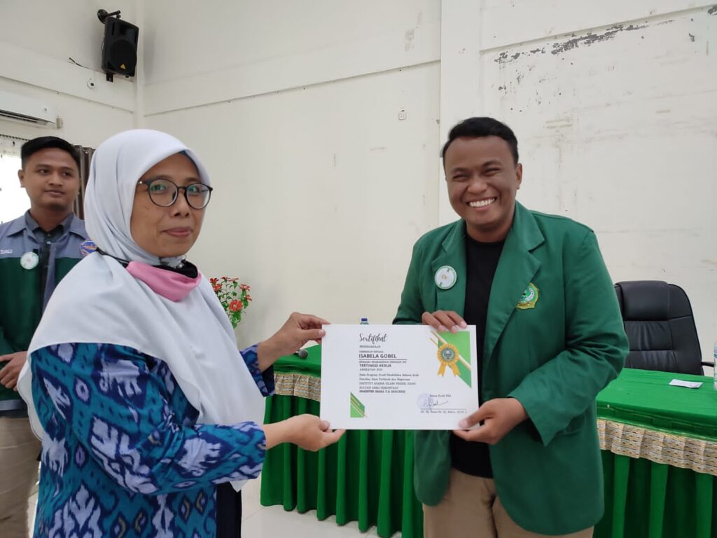 Pemberian Piagam Kepada Mahasiswa dengan Nilai Tertinggi oleh Kajur PBA Dr. Ratni Bt. H. Bahri, M.Pd.I